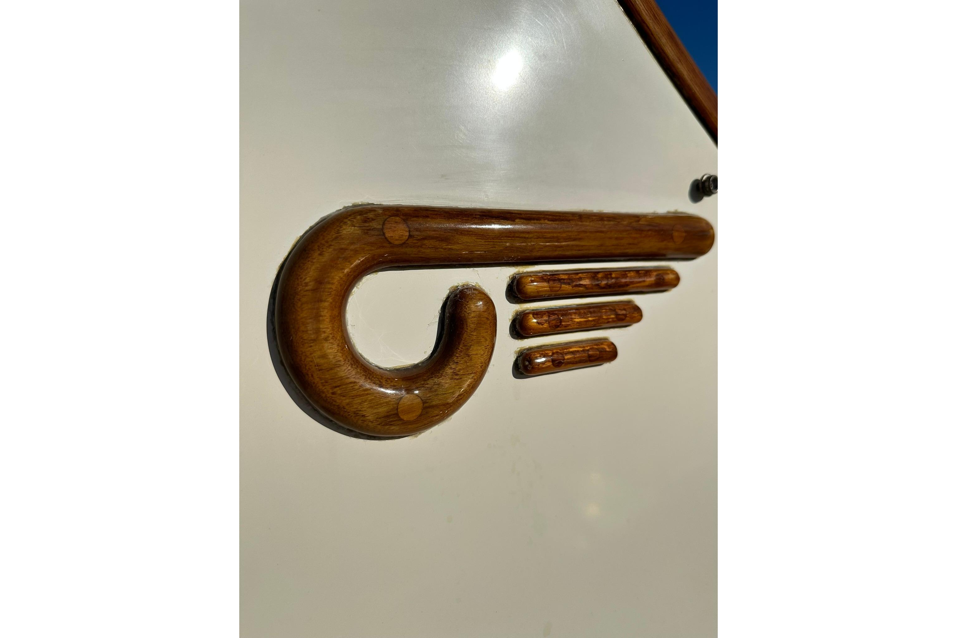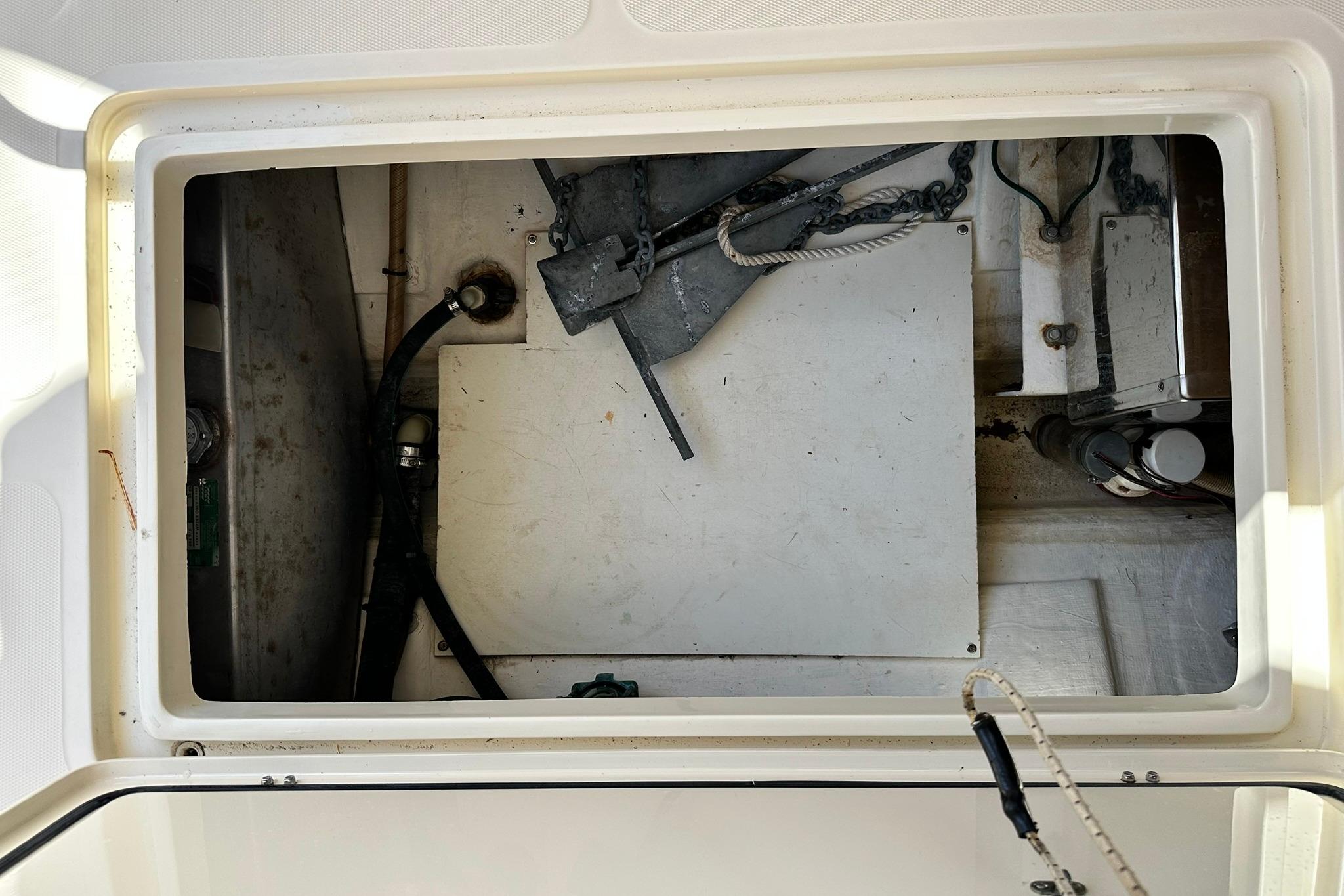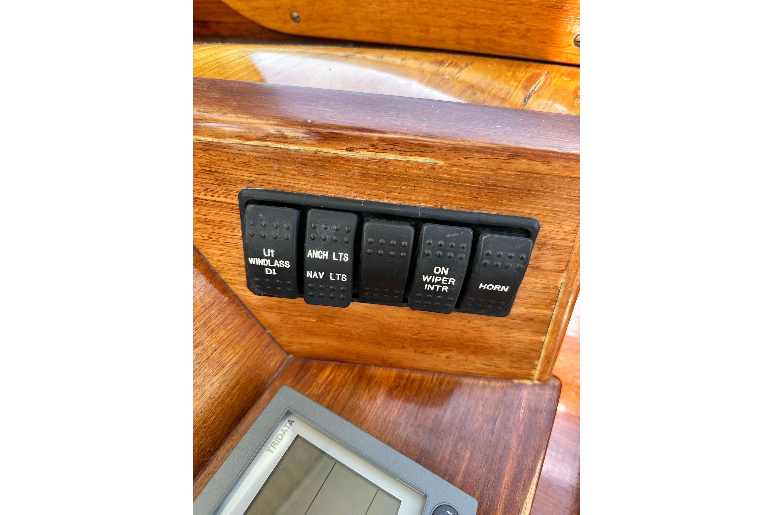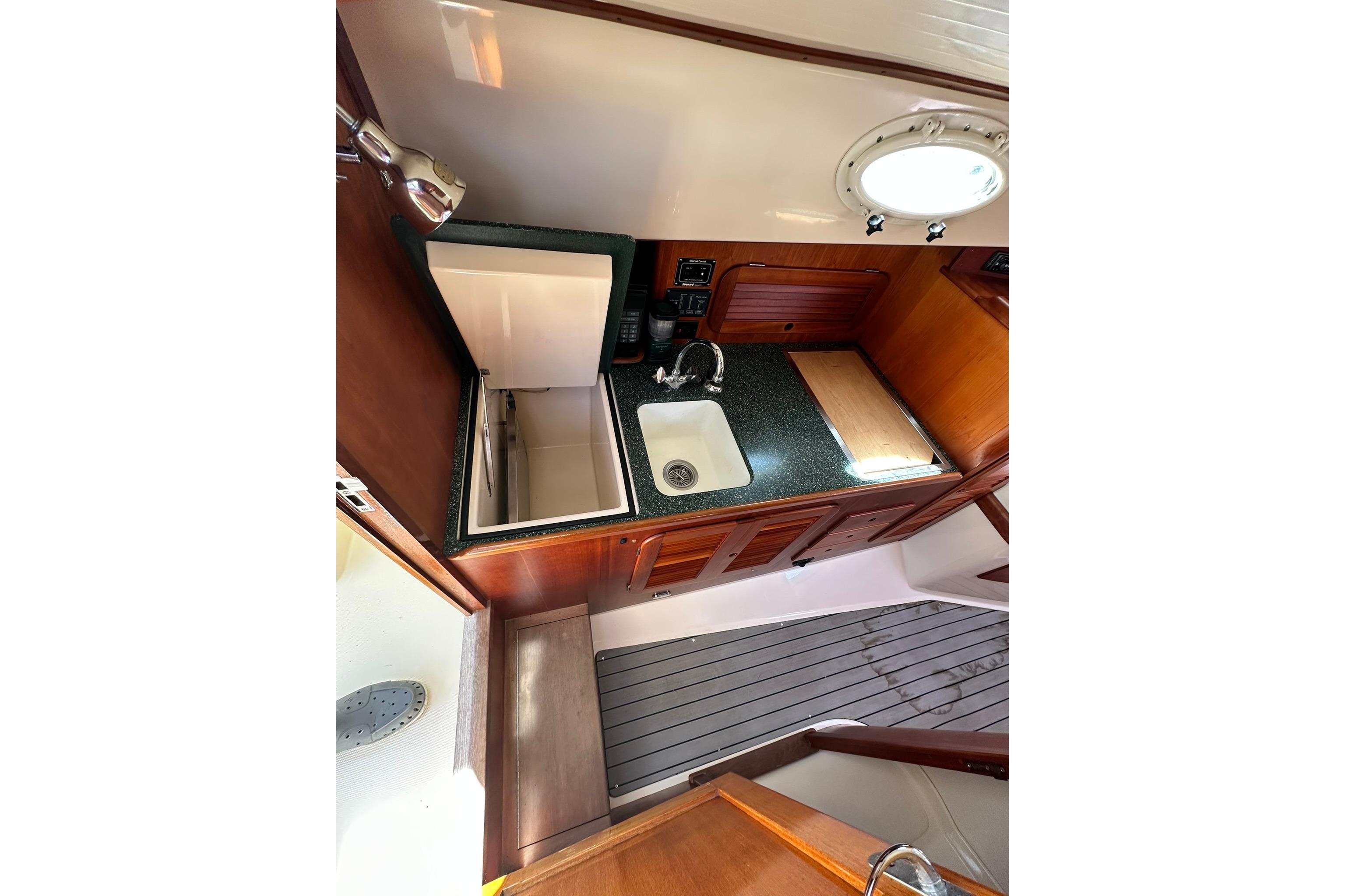 • Notable Features:A galley with a two-burner stove and refrigerator, a private head, and an Accu-point heater are among the interior amenities. Exterior features include varnished teak toe rails, handrails, and a custom Hinckley varnished teak bowsprit.