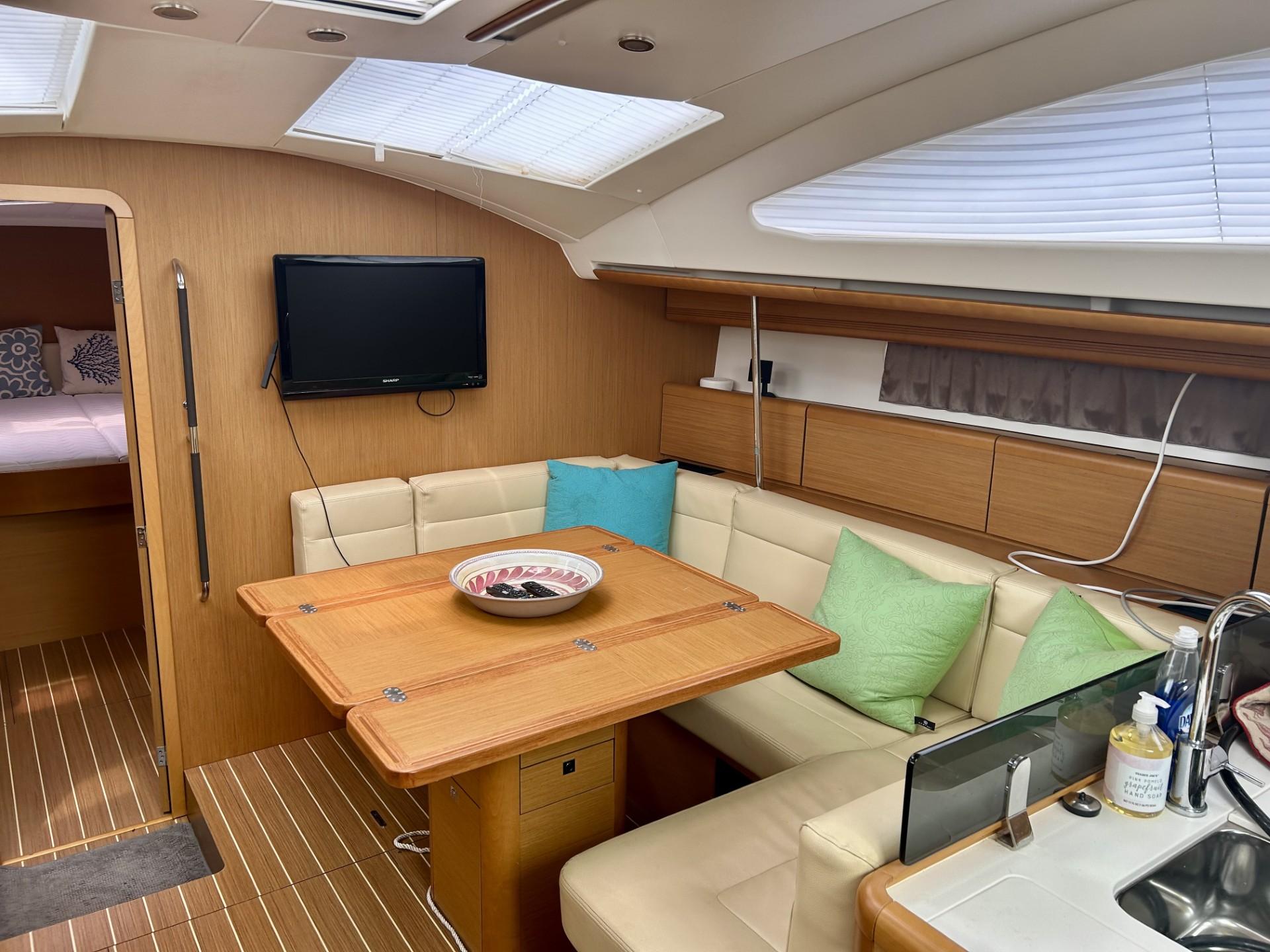 The Sun Odyssey 50 DS has long been considered one of the most successful production cruisers on the market. “Charisapa” is a fine example of a boat that has been very well cared for by her owners and has tons of future cruising potential. She is a three cabin / two head version. The spacious forward cabin features an ensuite head and large walk around bed. The main saloon is perfect for entertaining or living aboard. On deck, a smart layout makes short handed sailing a breeze. Electric winches combined with furling main and genoa ensure safe sailing from the cockpit. The shoal keel is perfect for coastal cruising.