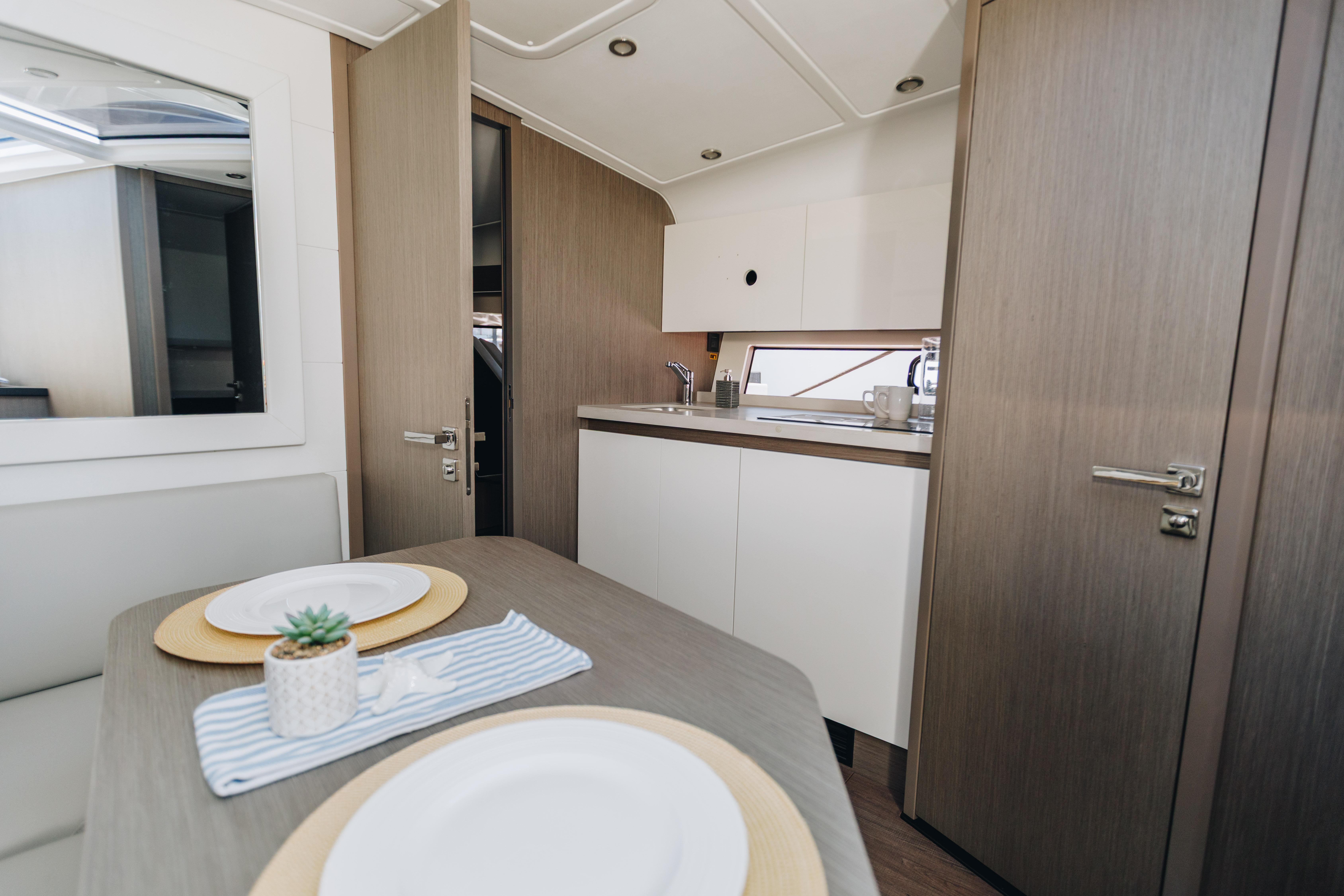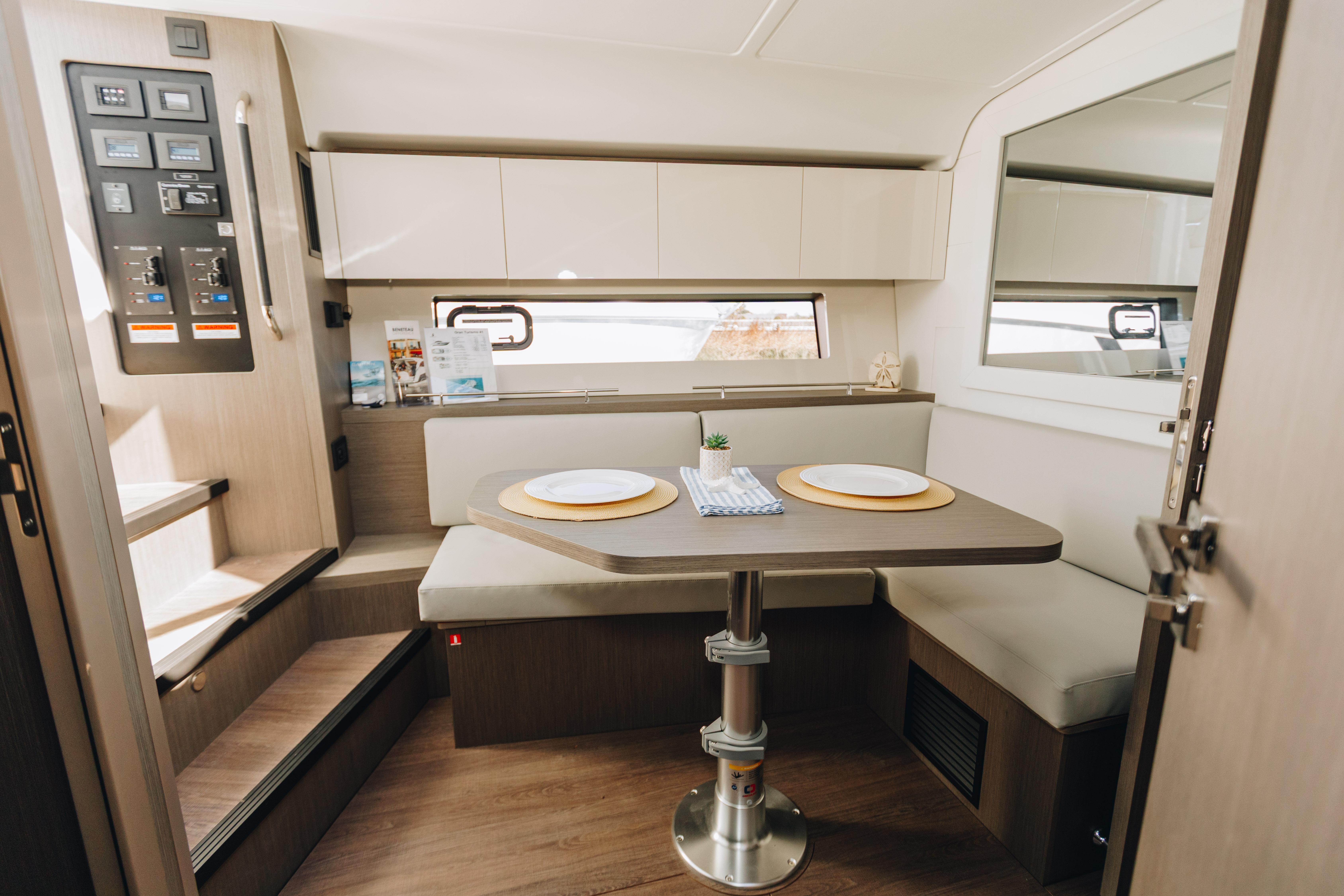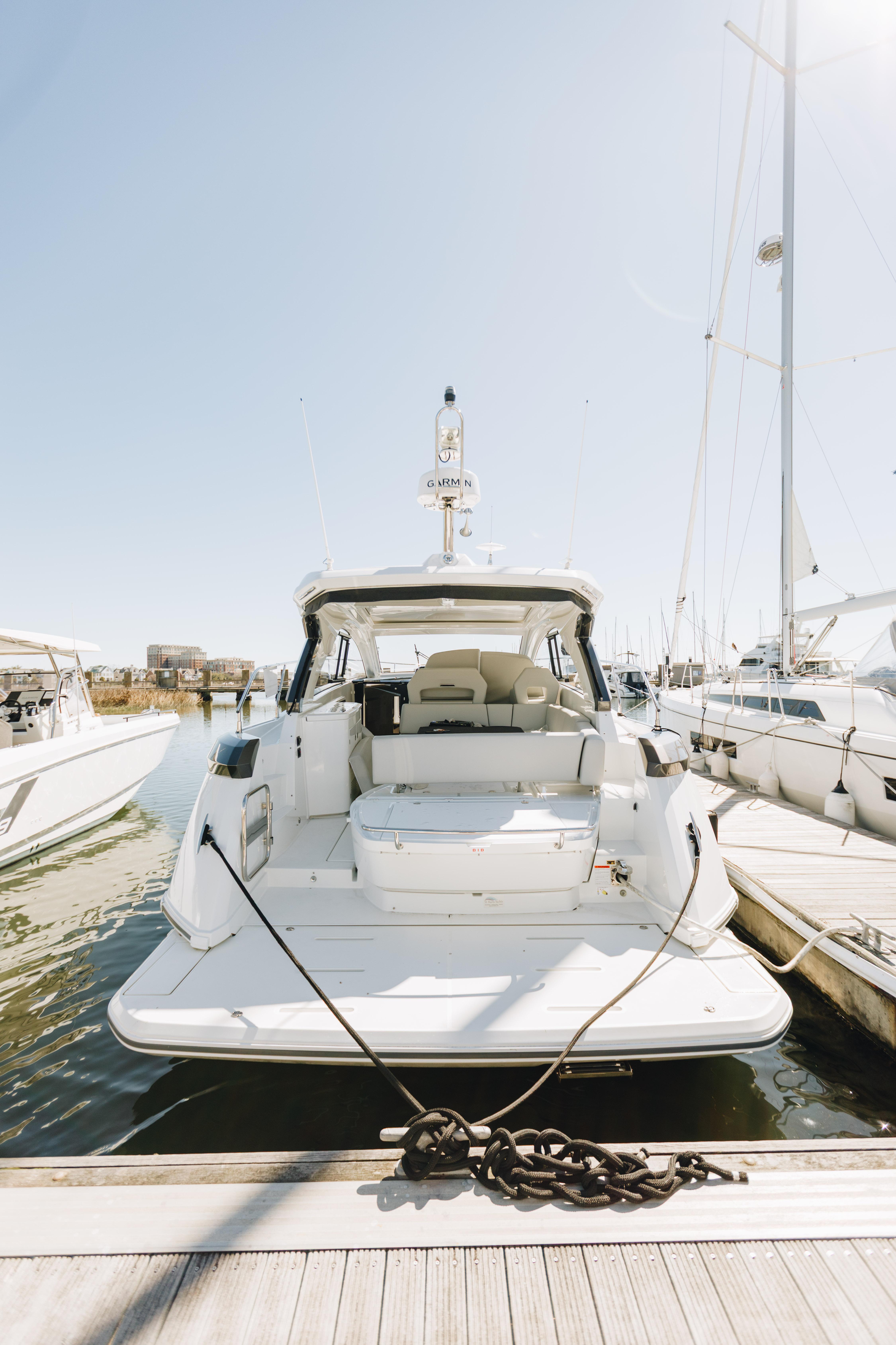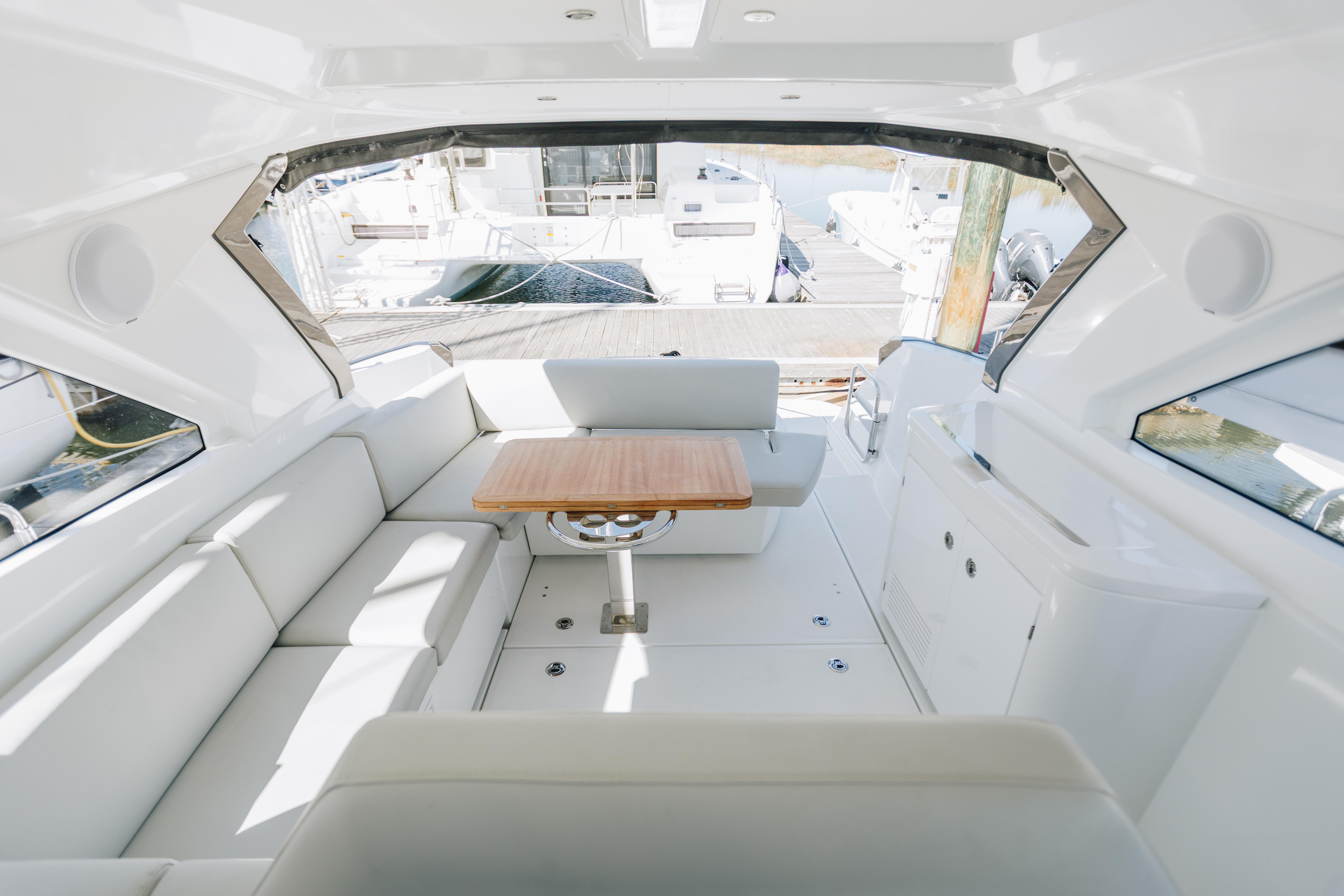 The GT 41 delivers sporty performance, sleek styling, and luxurious comfort for cruising, entertaining, or overnighting. The large sunroof, full beam cockpit, spacious cabin, and premium finishes make it one of the most desirable express cruisers in its class.